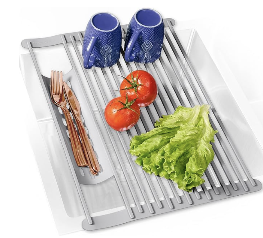 I hate traditional dish drying mats- but this design solved all my problems. It stretches across your sink. All water drips down the drain, and my counters aren't cluttered with drying items. Then it rolls up for compact storage. Game changer! Already marked down 17%, make sure to buy in time to check the promotional box to get an extra 15% off!
